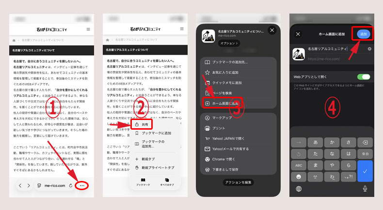 - 表示されたメニューの「ホーム画面に追加」をタップ
